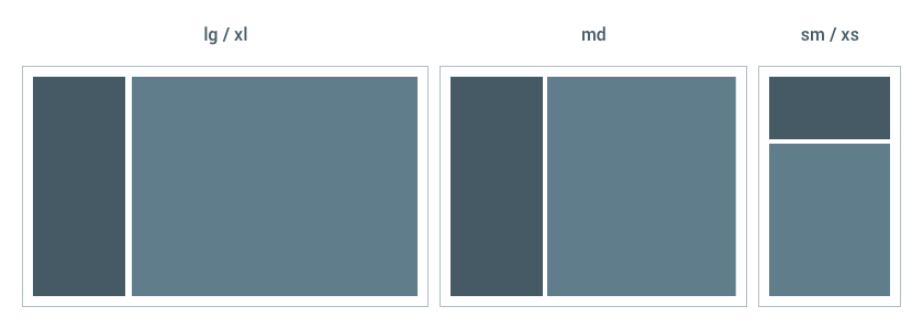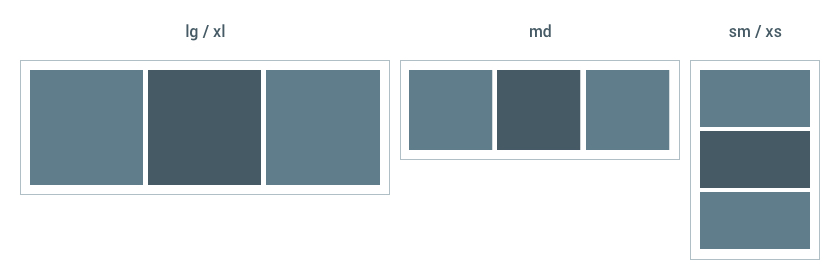 The second segment of the class name defines the screen size to target, while the final segment defines the column count to use at that size. Cells will always default to spanning the full column count of a row, allowing for mobile friendly fallbacks. There are three main screen size ranges, as well as two sub-ranges. Each range will have a min and max width, as well as a specific column count: